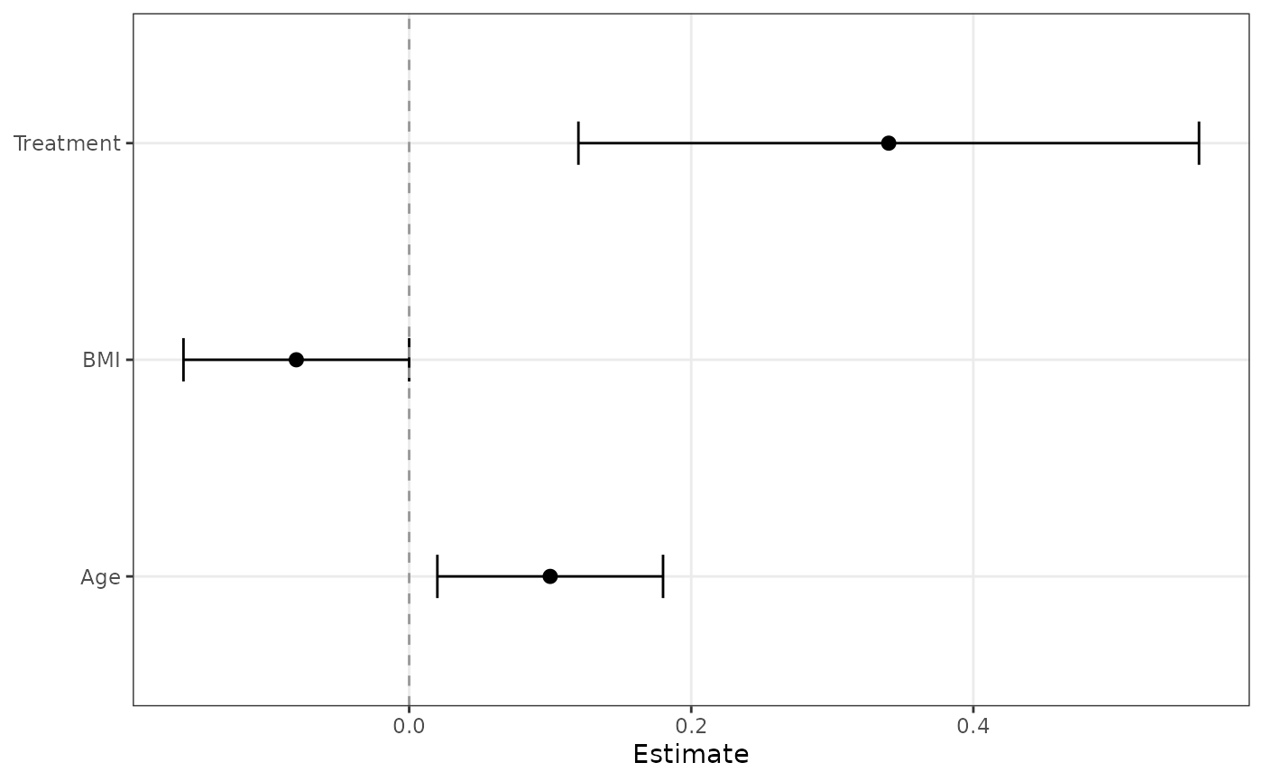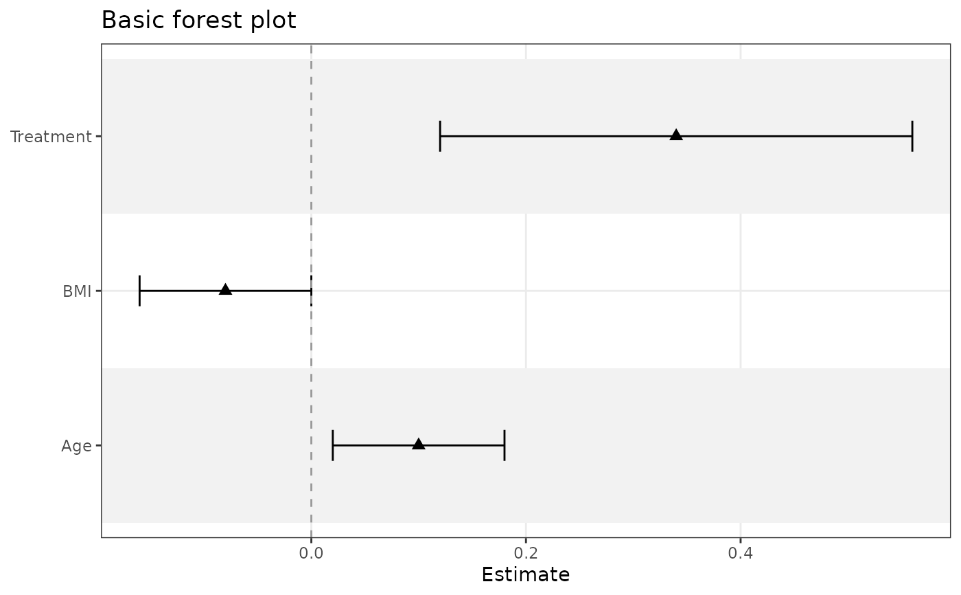 ggforestplot.RdBuilds a forest plot from standardized coefficient data or directly from a fitted model, with optional grouped sections, striped rows, separator lines for labeled variable blocks, and controls for point shape and confidence-interval staples.